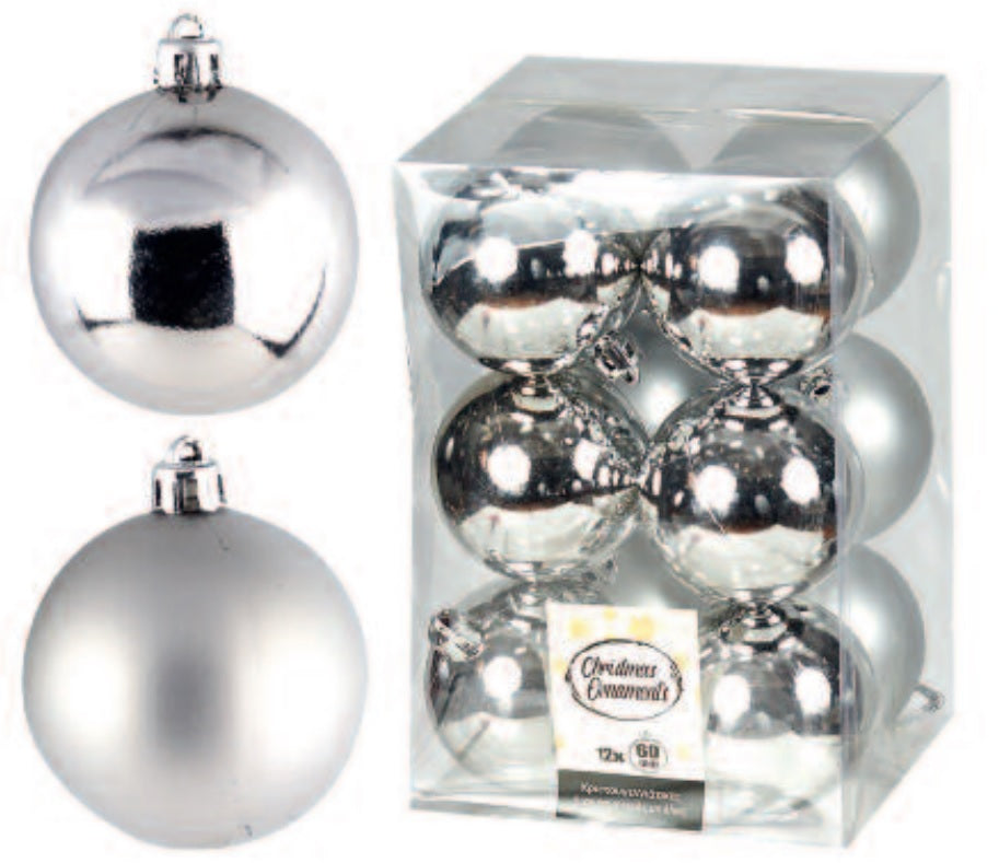 Πλαστική ασημί μπάλα 6 εκ. (set 12 τεμαχίων σε ζεύγη matt - shiny)