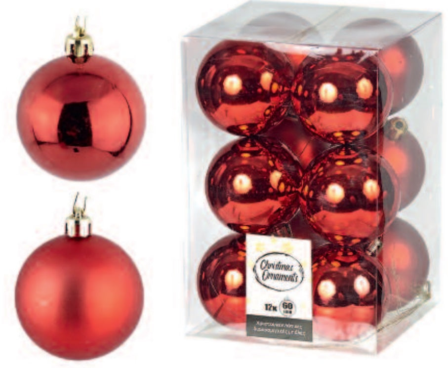 Πλαστική κόκκινη μπάλα 6 εκ. (set 12 τεμαχίων σε ζεύγη matt - shiny)