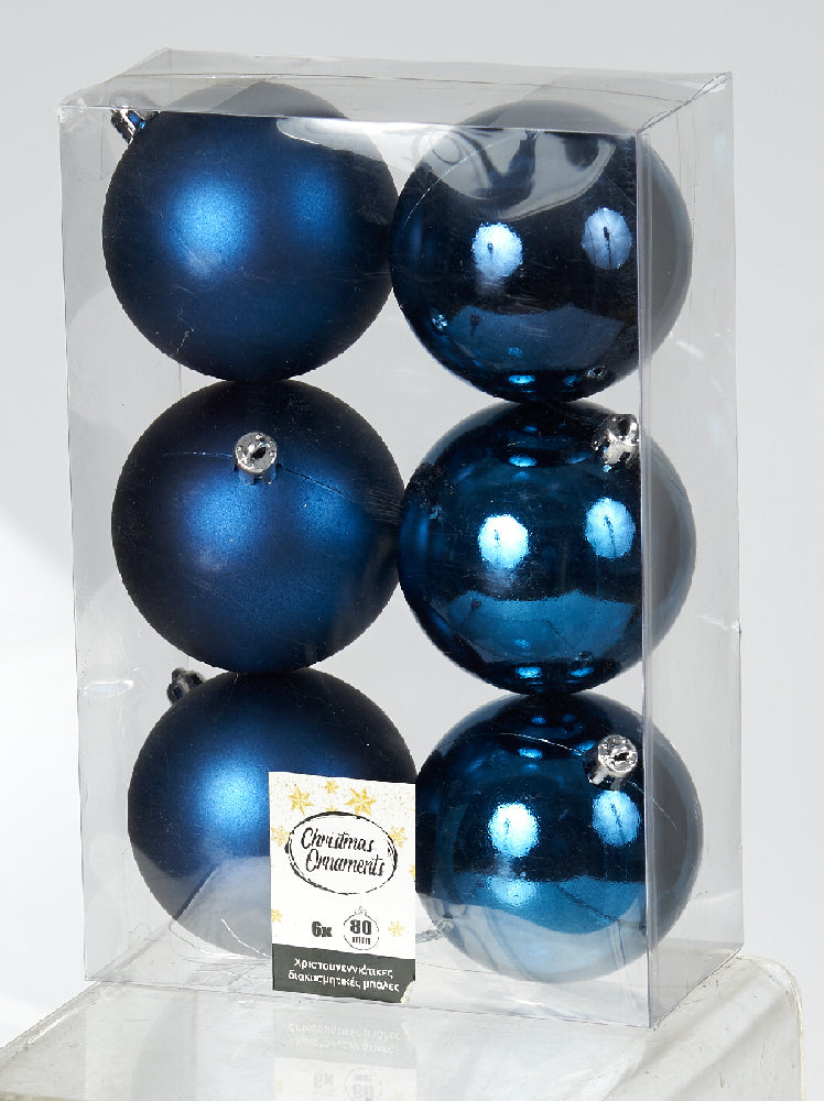 Μπλε μπάλα 8 εκ. (set 6 τεμαχίων σε ζεύγη matt - shiny)