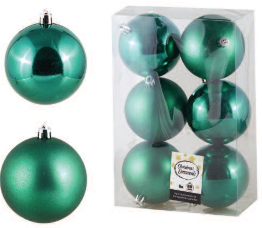 Πλαστική πράσινη (σμαραγδί) μπάλα 8 εκ. (set 6 τεμαχίων σε ζεύγη matt - shiny)