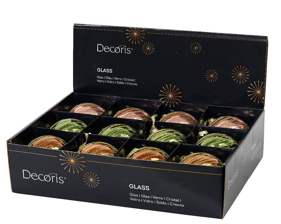 1 γυάλινη ροζ μπάλα 8 εκ. με χρυσές glitter λεπτομέρειες