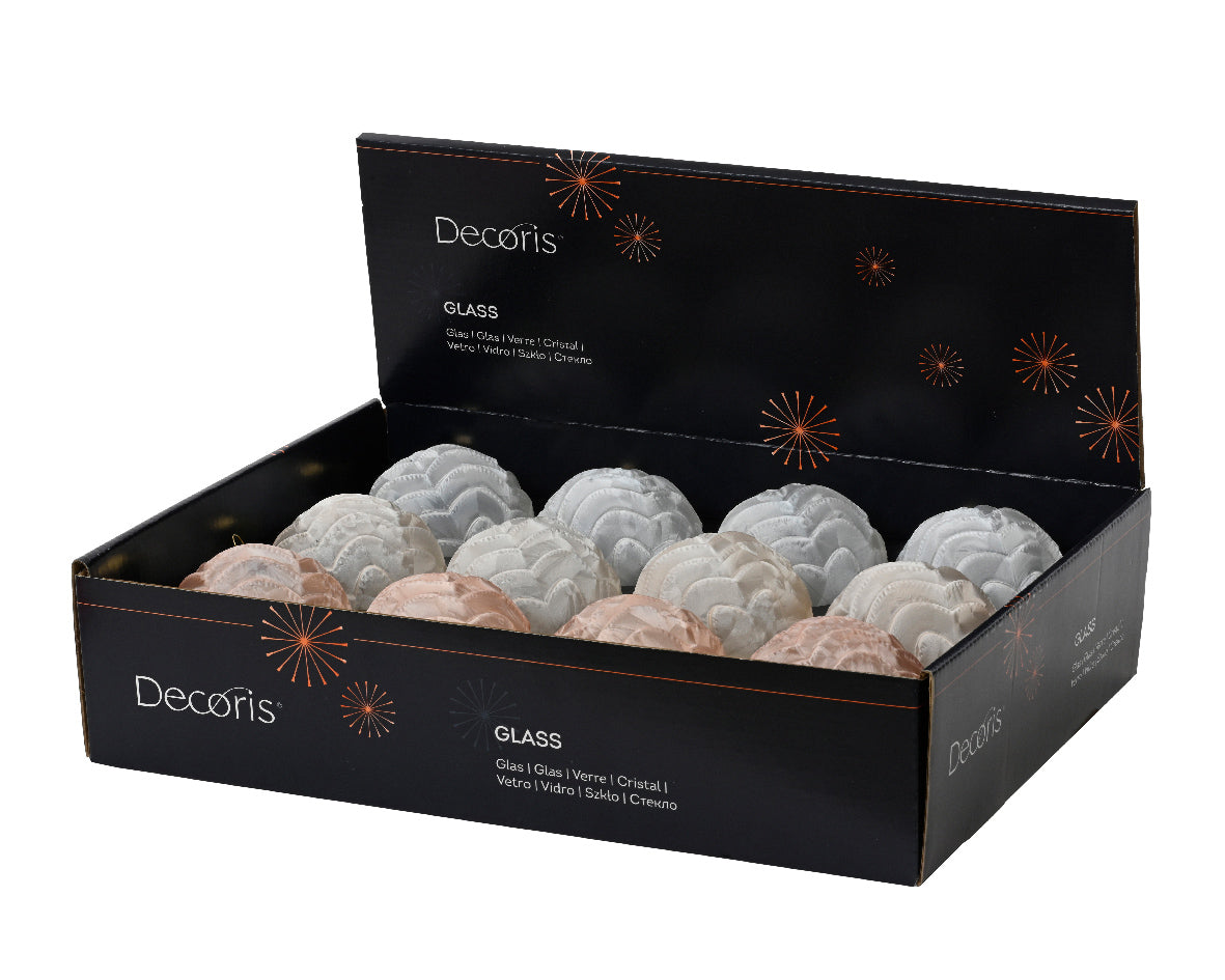 Set αποτελούμενο από 3 γυάλινες μπάλες 8 εκατοστών με ραβδώσεις.
